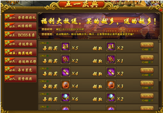 活动规则:活动期间内,除市场购买外,购买一定数量的指定道具可以获得奖励。