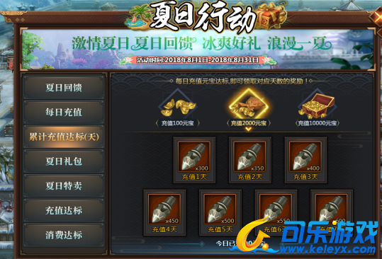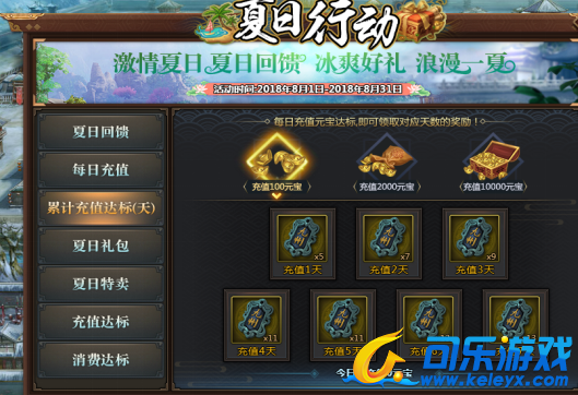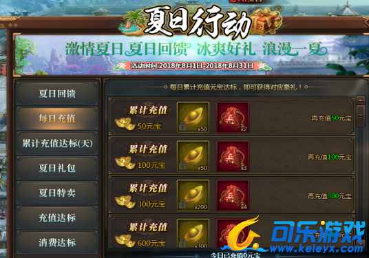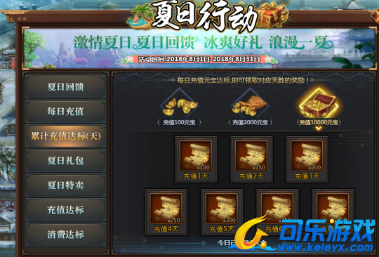 l 活动期间,每日累计充值达标即可领取对应奖励。具体对应档次奖励情况: