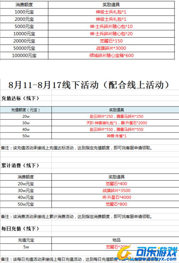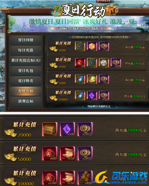 l 活动期间,充值达标即可领取对应奖励。具体对应档次奖励情况: