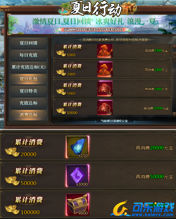 l 活动期间,玩家消费达标即可领取对应档次奖励。具体对应档次奖励情况: