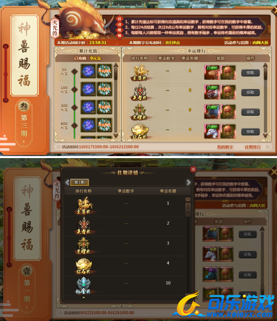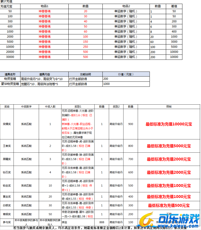 l 活动期间,玩家充值可领取对应档次奖励和一定数量幸运数字;