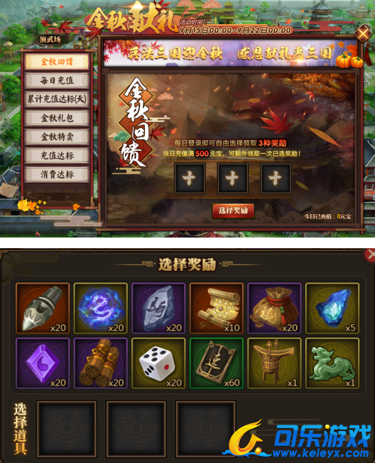 l 当日充值满500元宝,可额外领取一次已选奖励。