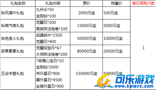 l 活动期间可购买超值优惠大礼包,具体对应礼包内容情况: