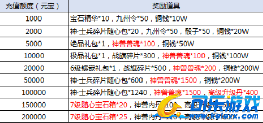 l 活动期间,充值达标即可领取对应奖励。具体对应档次奖励情况: