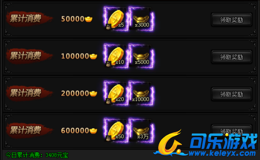 活动期间,每日累计消费指定数额元宝即可领取奖励!