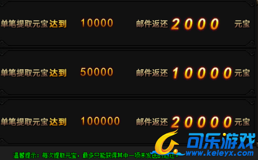 活动期间内,每日单笔充值指定数额元宝即可领取奖励!
