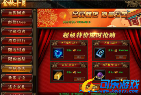 1.活动期间,玩家可在神秘商店中购买商品,商品可用金币,绑元,元宝进行购买;