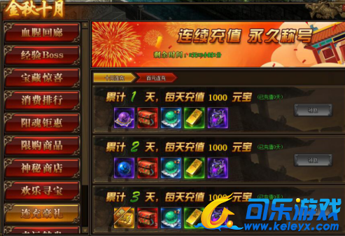 1.活动期间,每天充值10元、100元可领取境界修为、特戒礼盒。