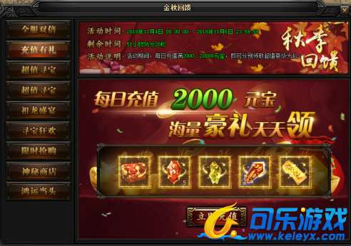 活动说明:活动期间,每日充值满2000、20000元宝!还能领取超值豪华大礼