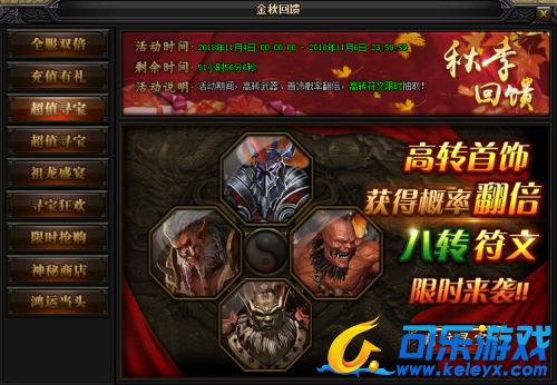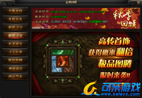 2,活动说明:活动期间,高转武器、首饰概率翻倍,极品图腾限时抽取!