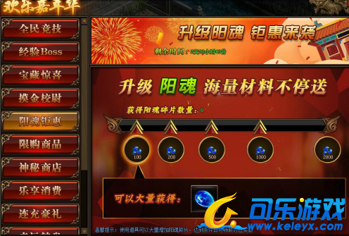 1. 活动期间,玩家获得阳魂碎片数量,达到条件可领取对应阳魂碎片奖励。