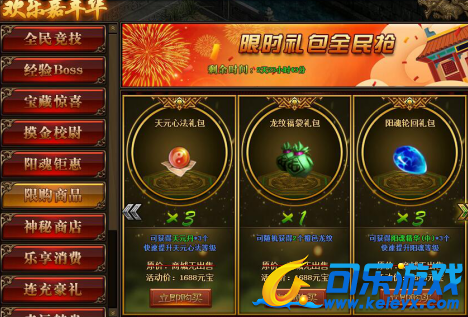 1.活动期间,玩家可在活动面板购买限购商品;(可翻页)