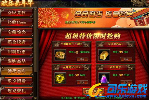 1.活动期间,玩家可在神秘商店中购买商品,商品可用金币,绑元,元宝进行购买;