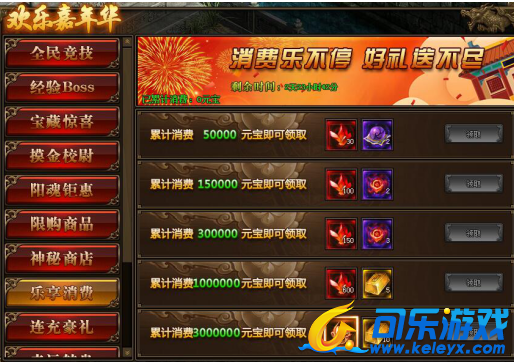 1.活动期间,玩家累计消费满足要求,可以领取境界修为、本职业星石、传世灵戒等相应奖励;