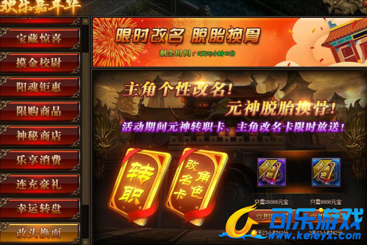1.活动期间,玩家可在活动面板中购买元神转职卡,让元神脱胎换骨;
