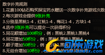 活动内容:活动时间内,玩家可以花费100钻石购买探宝药水并获赠一次数字扑克游戏次数。
