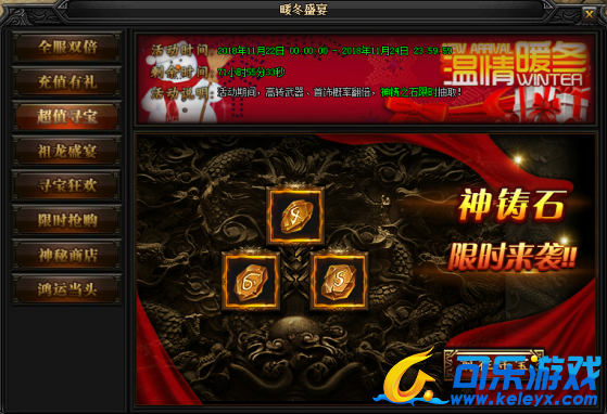 活动说明:活动期间,高转武器、首饰概率翻倍,神铸之石限时抽取!
