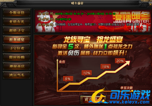 活动说明:活动期间,在龙族寻宝中,每寻宝5次,可额外获得1点祖龙之力,获取无上限