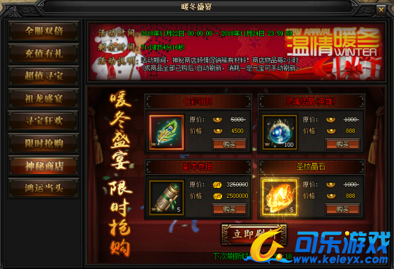 活动说明 : 活动期间内,神秘商店倾情促销稀有材料!商店物品每2小时(或商品全部已购后)自动刷新,消耗一定元宝可收动刷新。