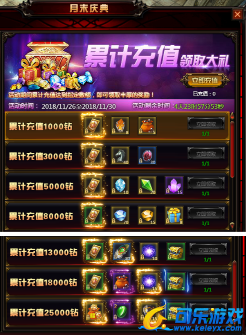 活动内容:玩家在活动时间内,累计充值达到一定钻石即可获得丰厚礼品,BOSS卡、6级宝石袋等你来拿!