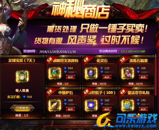 活动内容:活动时间内,玩家可在内查看每日购买内容,限时特惠每日仅可购买一次且仅限当日购买。机不可失,赶快来购买吧。