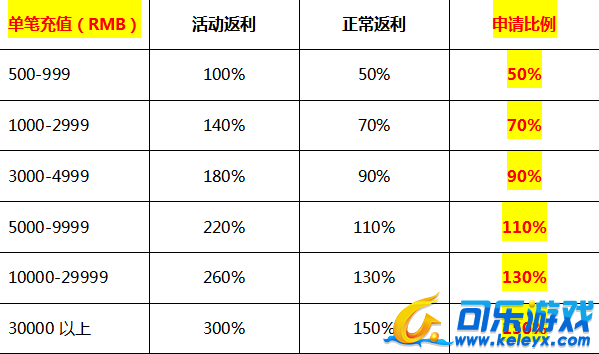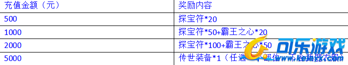 注:只能领取一档奖励(例:玩家充值5000元,只能领取5000元档奖励或者2000元档加1000元档*3)