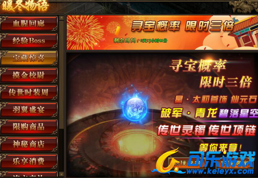1.活动期间,玩家寻宝概率翻倍,极高几率获得星·太初首饰,仙元石、碧落星空,神力特戒钢纹,传世灵器·手镯碎片、传世灵器·项链碎片以及破军·青龙