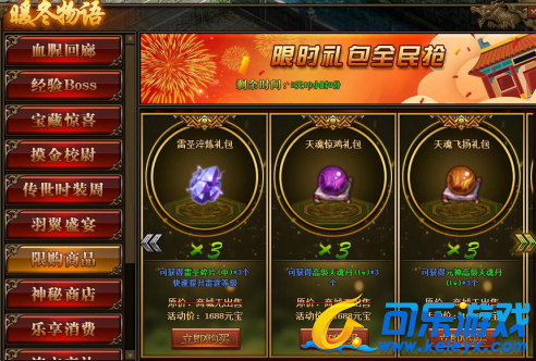 1.活动期间,玩家可在活动面板购买限购商品;(可翻页)