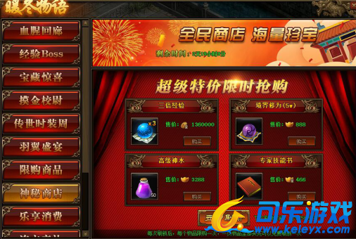2.神秘商店每2小时自动刷新一次,也可用花费元宝立即刷新;