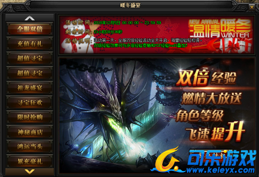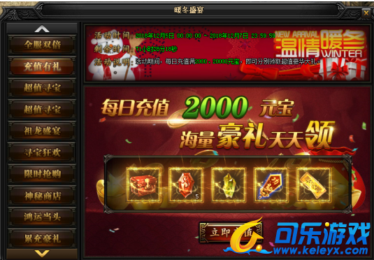 活动说明:活动期间,每日充值满2000、20000元宝!还能领取超值豪华大礼