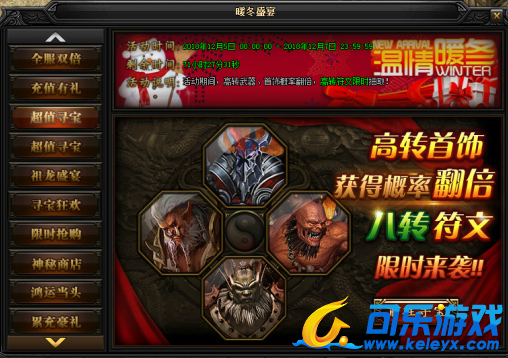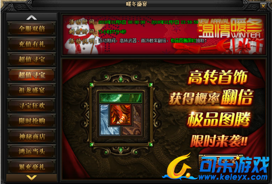 2,活动说明:活动期间,高转武器、首饰概率翻倍,极品图腾限时抽取!