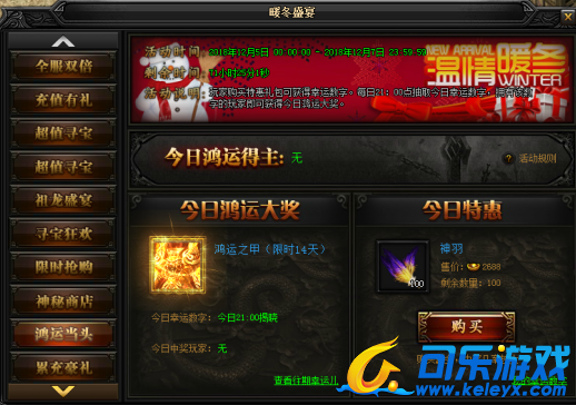 活动说明 : 玩家购买特惠礼包可活动幸运数字。每日21:00抽取今日幸运数字,拥有该数字的玩家即可获得今日鸿运大奖。