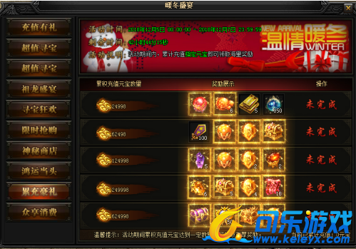 活动说明 : 活动期间内,累计充值指定元宝即可领取海量奖励