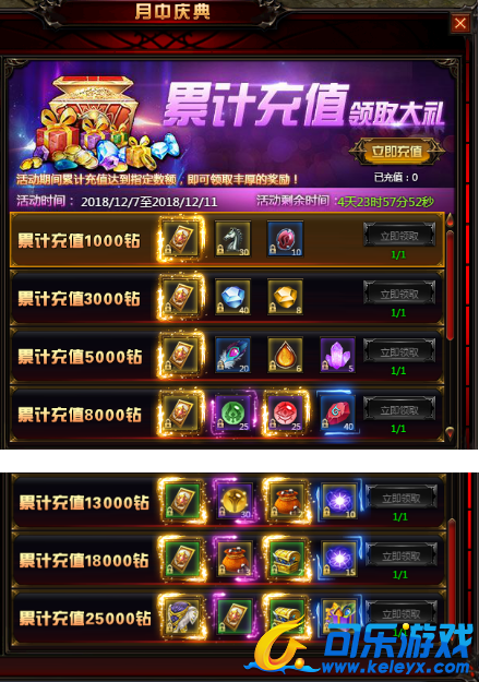 活动内容:玩家在活动时间内,累计充值达到一定钻石即可获得丰厚礼品,大象坐骑幻化、5级宝石袋等你来拿!