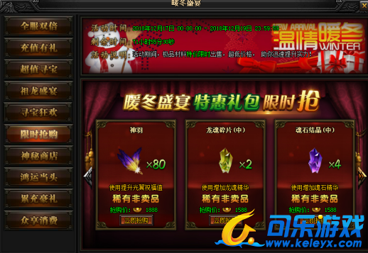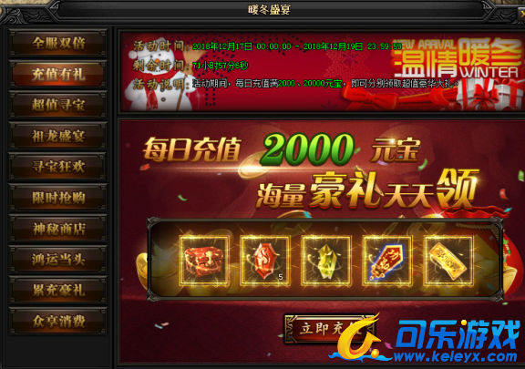 活动说明:活动期间,每日充值满2000、20000元宝!还能领取超值豪华大礼