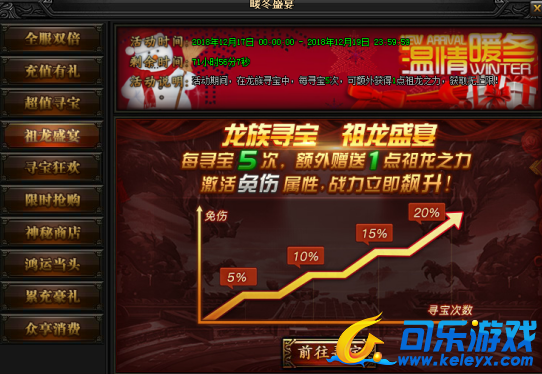 活动说明:活动期间,在龙族寻宝中,每寻宝5次,可额外获得1点祖龙之力,获取无上限