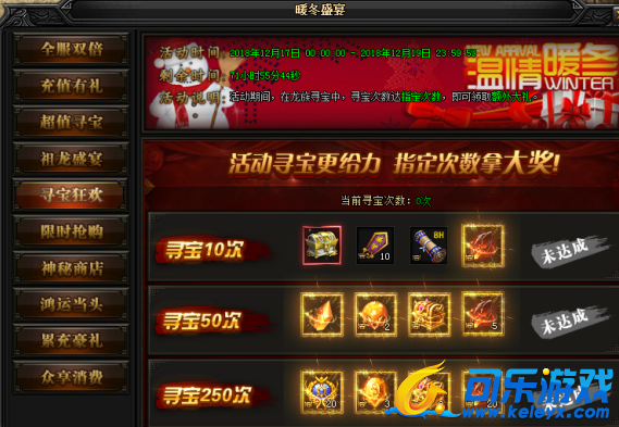 活动说明:活动期间,在龙族寻宝中,寻宝次数达指定次数,即可额外大礼。