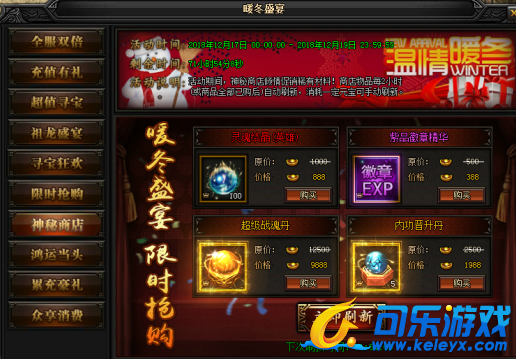活动说明 : 活动期间,神秘商店倾情促销有材料!商店物品每2小时(或商店全部已购后)自动刷新,消耗一点元宝可手动刷新。