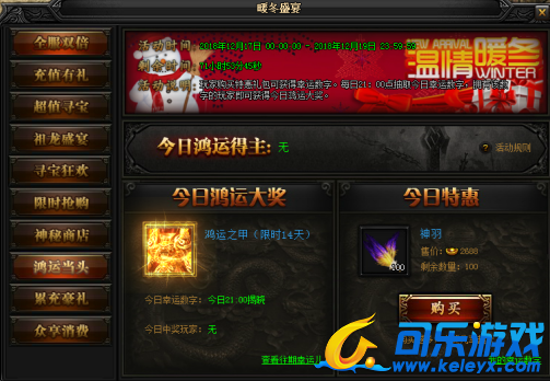 活动说明 : 玩家购买特惠礼包可活动幸运数字。每日21:00抽取今日幸运数字,拥有该数字的玩家即可获得今日鸿运大奖。