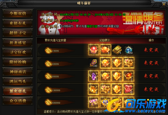 活动说明 : 活动期间内,累计充值指定元宝即可领取海量奖励