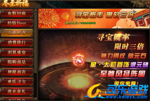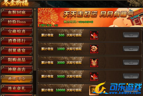 1.活动期间,玩家累计寻宝次数满足要求,可以领取本职业星石、本职业仙装、传世灵器·仙带等相应奖励