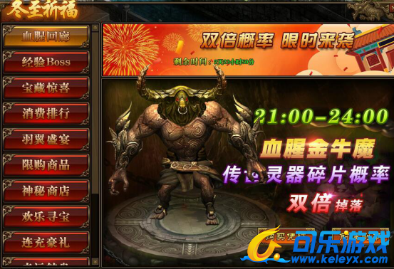 1. 活动期间,玩家参与“多人副本-血腥回廊”,获得“传世灵器碎片”的概率翻倍;