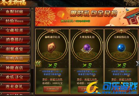 1.活动期间,玩家可在活动面板购买限购商品;(可翻页)