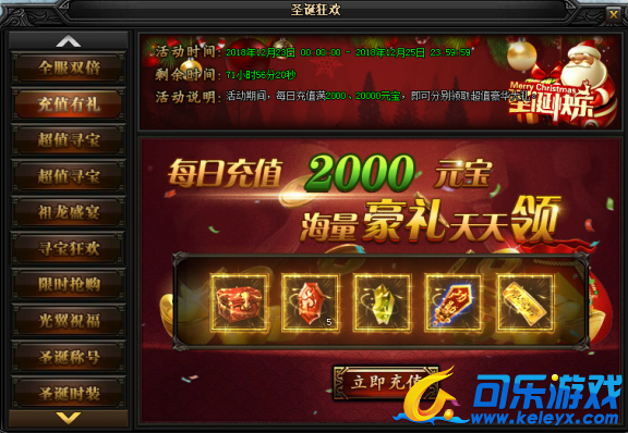 活动说明:活动期间,每日充值满2000、20000元宝!还能领取超值豪华大礼