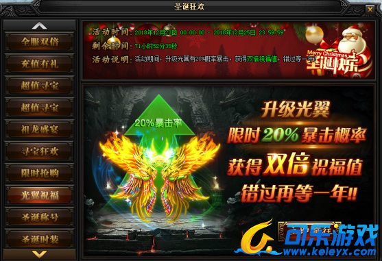 活动说明:活动期间,升级光翼有20%概率暴击,获得双倍祝福值,错过等一年