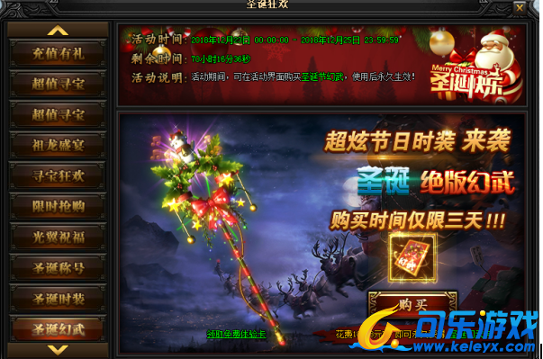 活动说明:活动期间,可在活动界面购买圣诞幻武,使用后永久生效