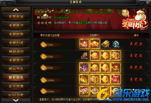 活动说明 : 活动期间内,累计充值指定元宝即可领取海量奖励