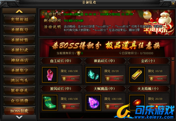 活动说明 : 活动期间内,击杀BOSS获得“boss积分”“boss积分”可用于兑换材料,每种材料均有兑换次数限制,“boss积分”在活动结束后,清除归零