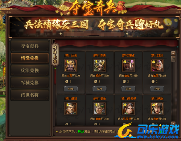 l 活动期间,提供神话武将及坐骑碎片兑换。