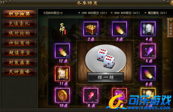 2. 活动期间内,玩家击杀boss可获得boss积分,boss积分数量达指定档次可免费投掷一次骰子,根据骰子点数可领取奖励。每日最多可获得三次